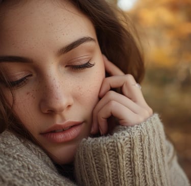 À l’automne, ce déséquilibre s’accentue : la peau, déjà fragilisée, doit s’adapter au froid et à l’air sec, ce qui augmente la rougeur, la sensibilité et la déshydratation.